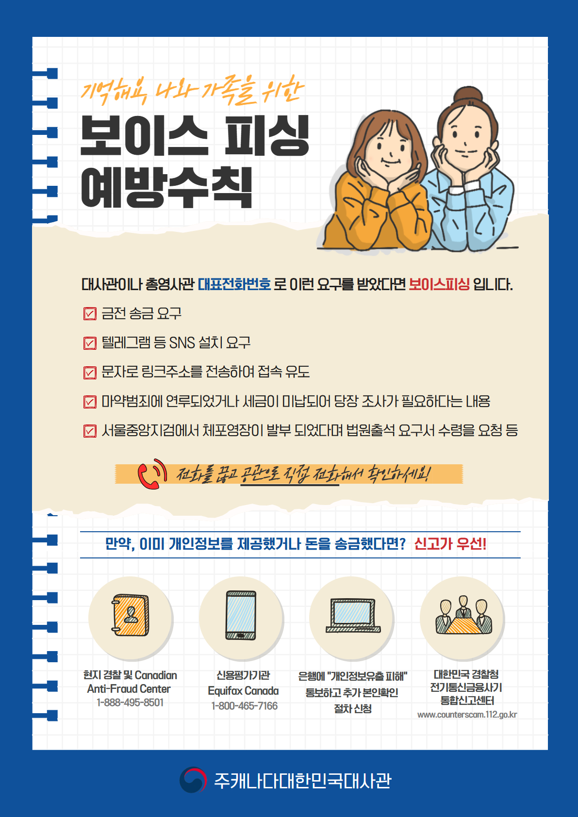 ㅇ 재외공관 직원을 사칭하며 서류 픽업 및 개인정보를 요구하는 전화에 응하지 않기